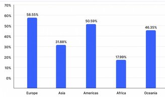 The Oceania continent has the highest number of bitcoin users, followed by Africa.